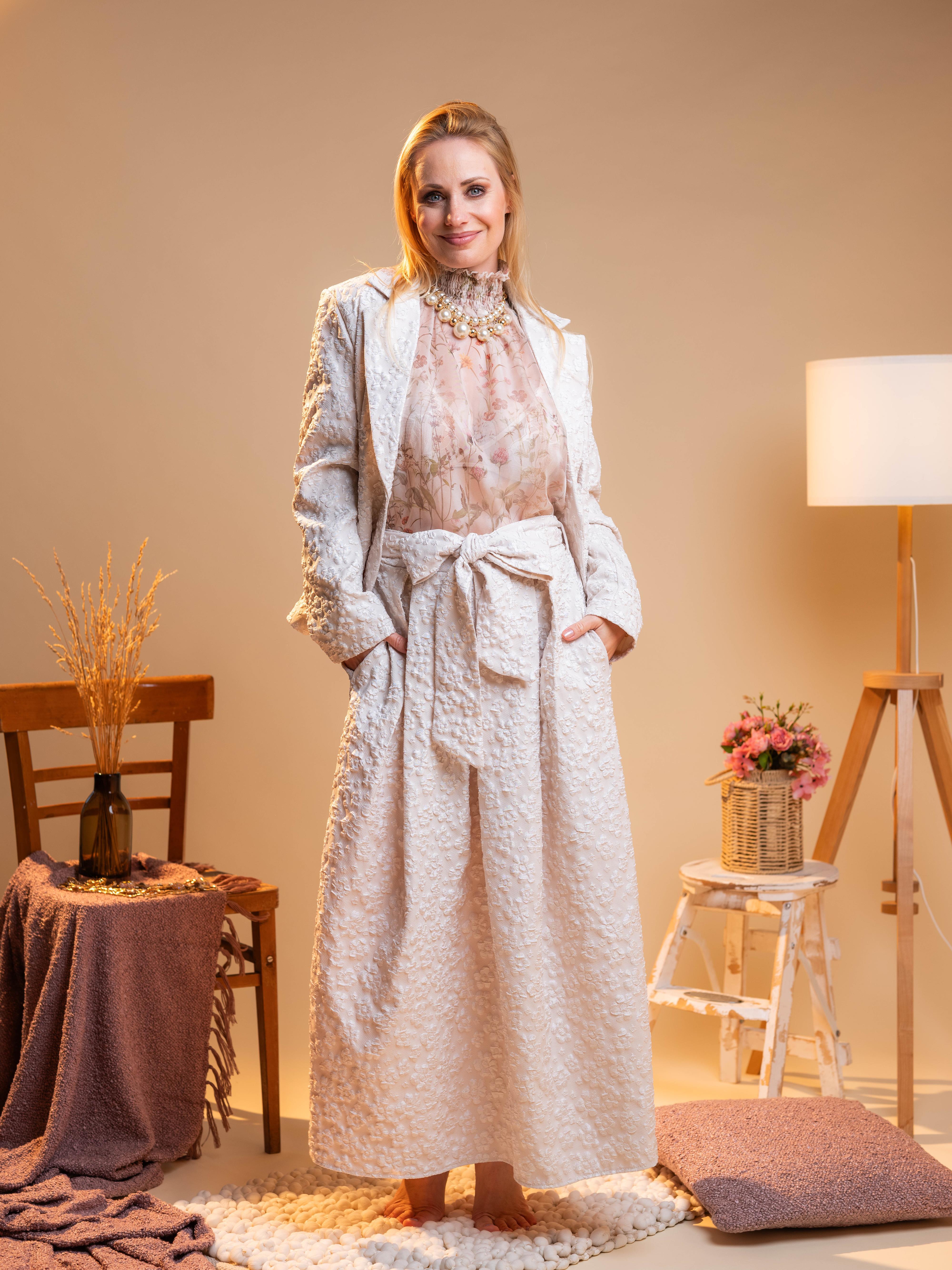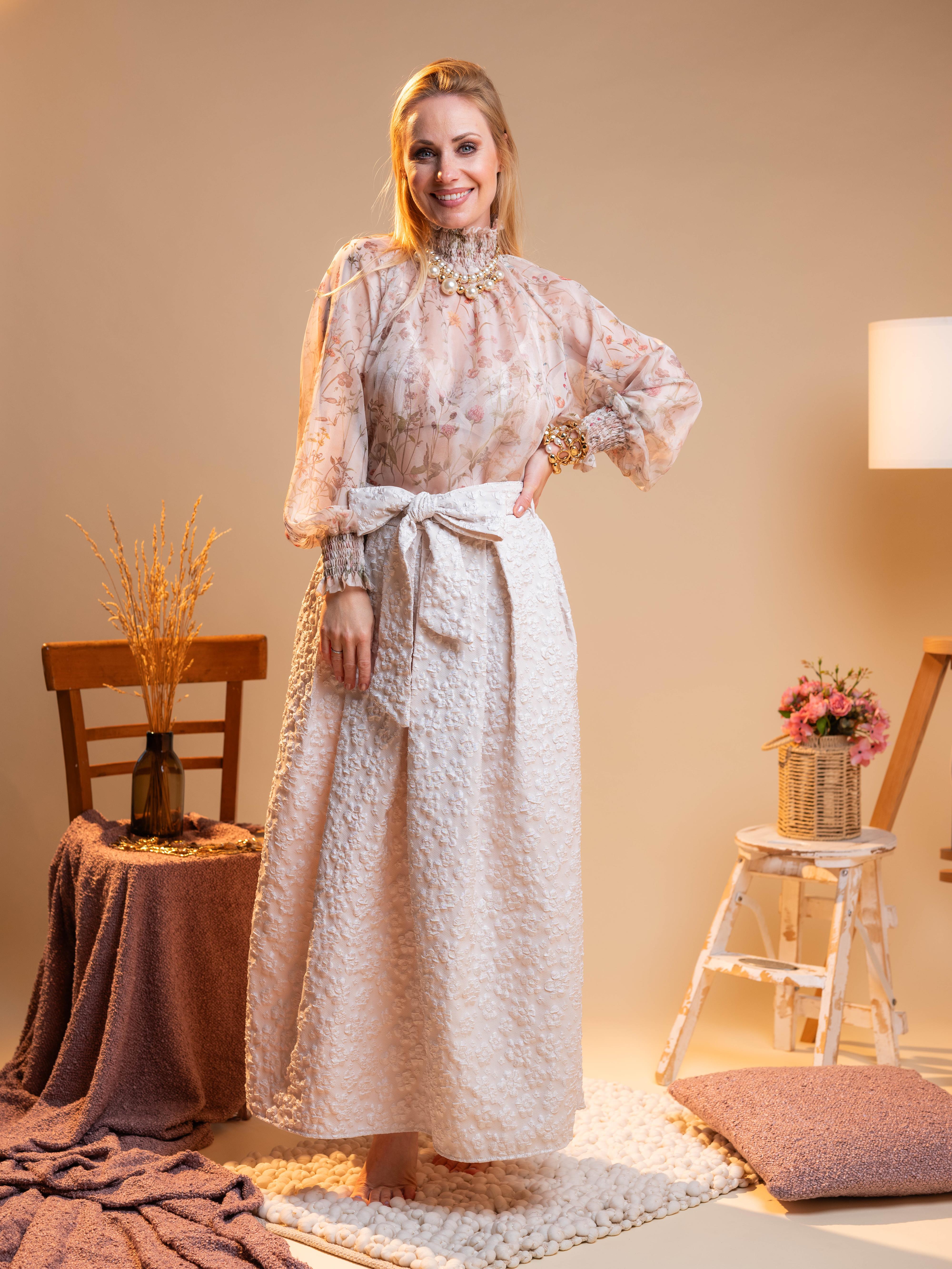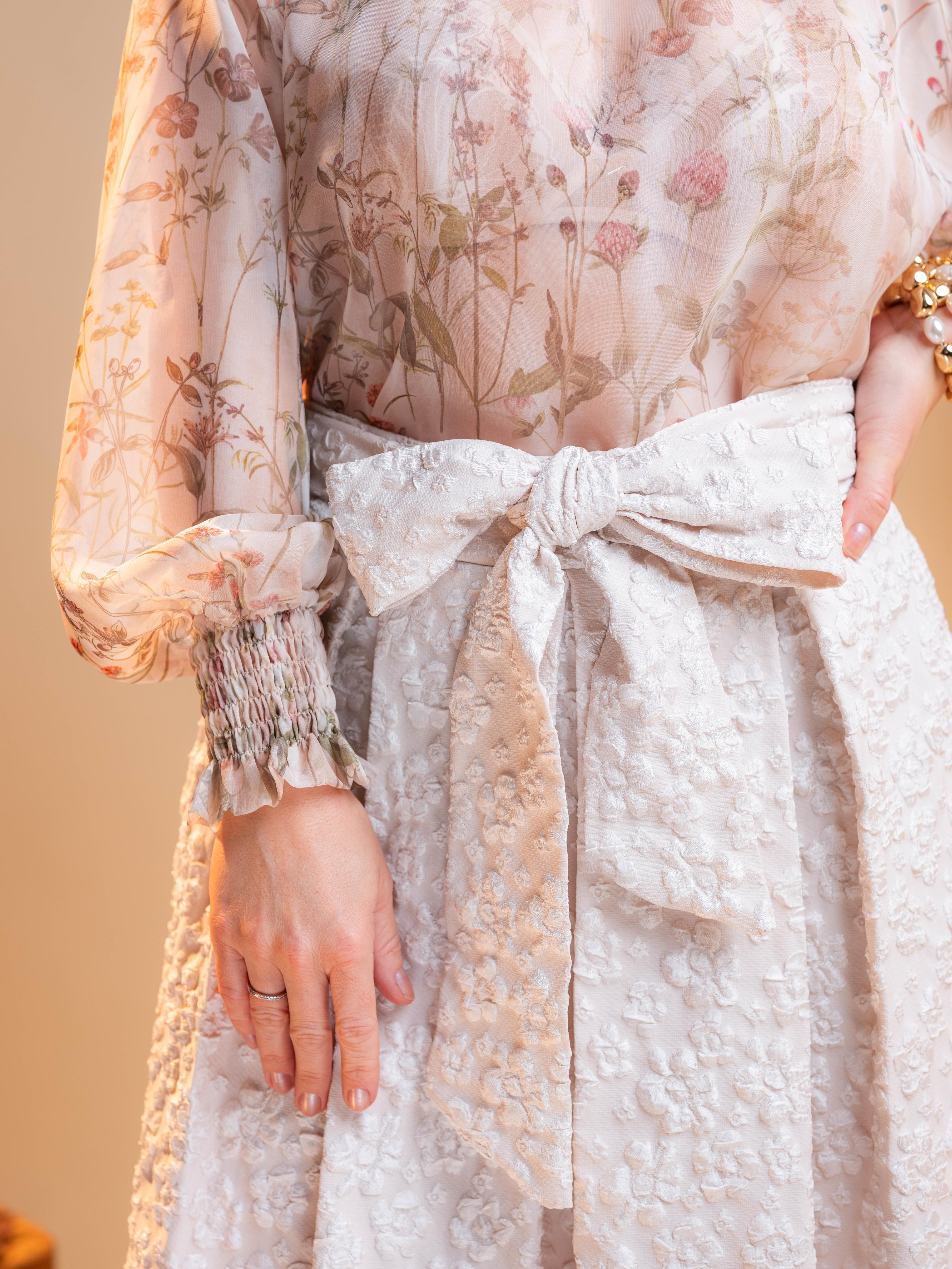 - Modno krilo s cvetličnim vzorcem in pasom s pentljo
