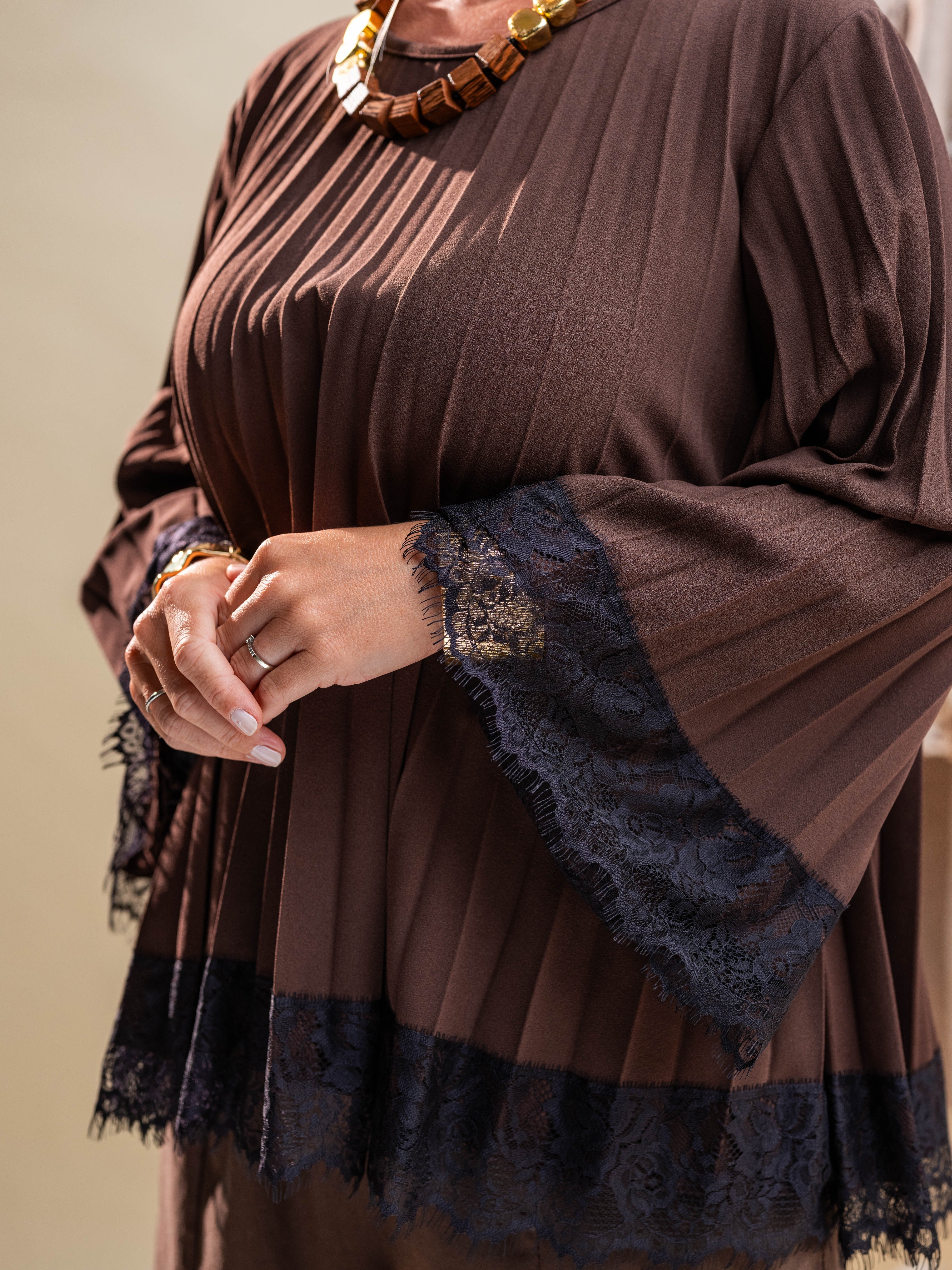 Sale -30% Product form Plisirana rjava bluza z okrasno čipko €39,10 €27,37 DDV je že vključen v ceno. Quantity Add to cart