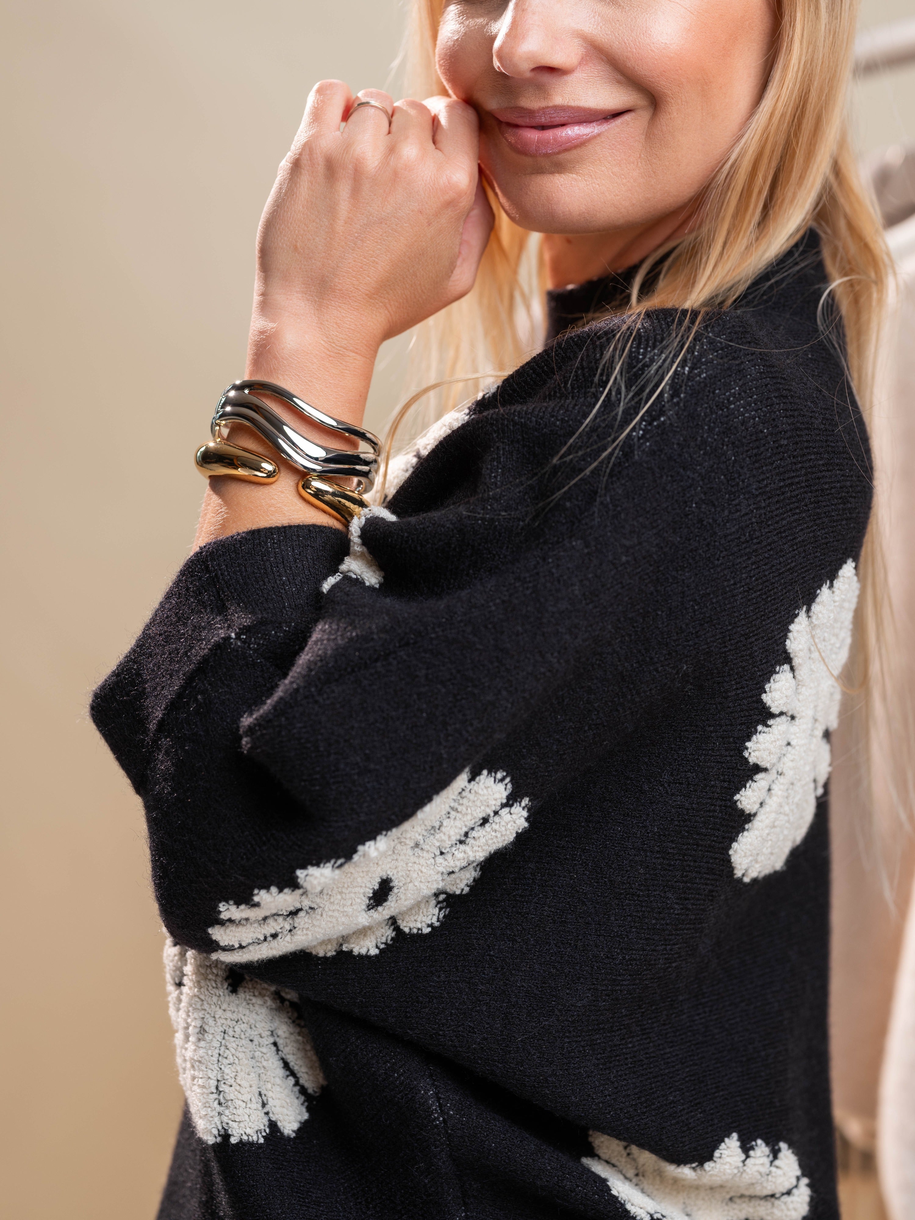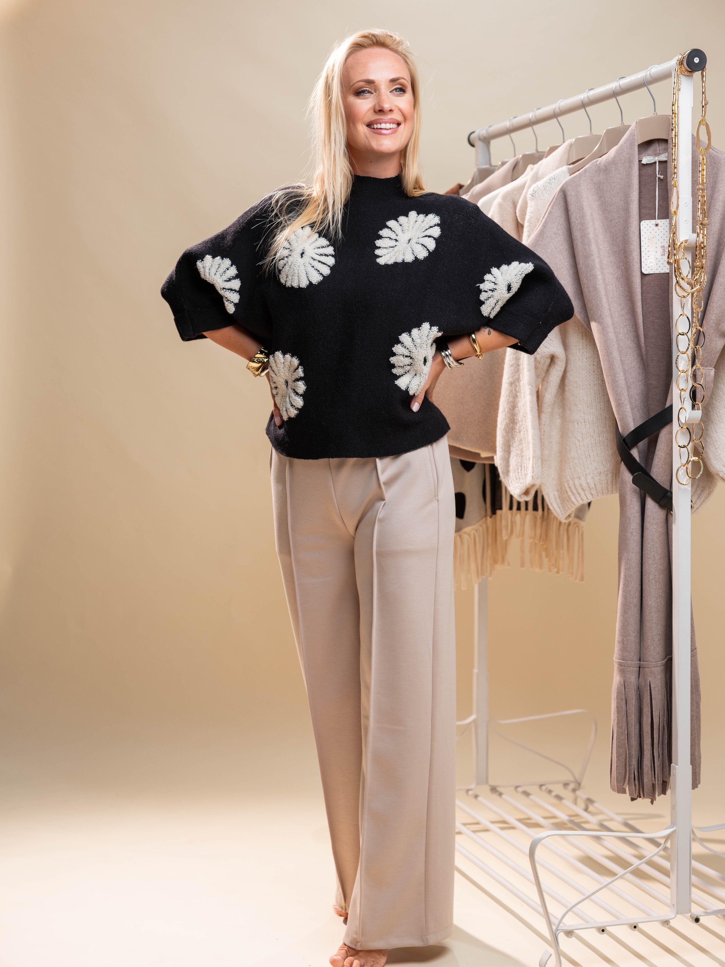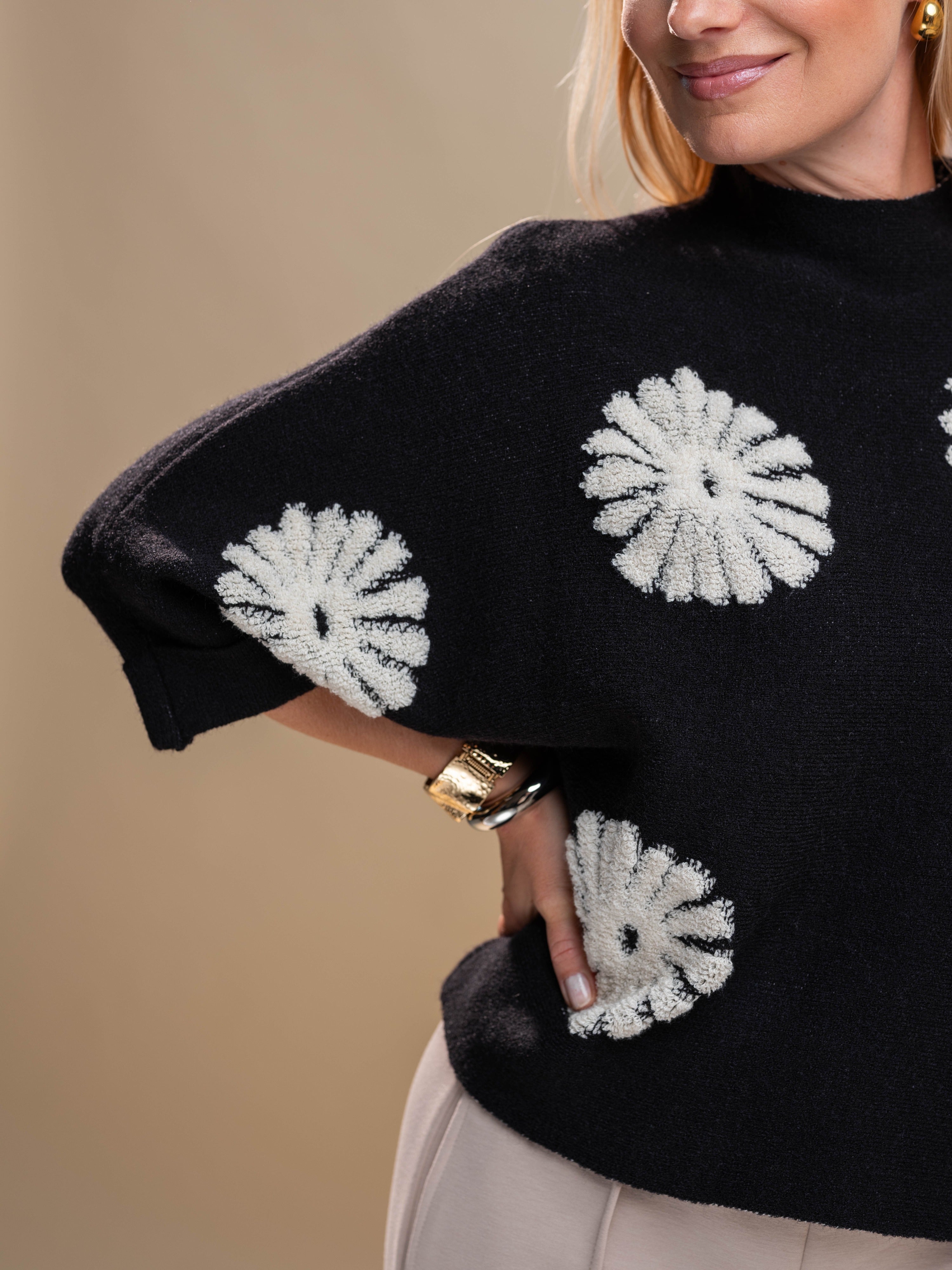Obrazec izdelka Črn pulover z belimi cvetovi €39,10 DDV je že vključen v ceno. Količina Dodaj v košarico