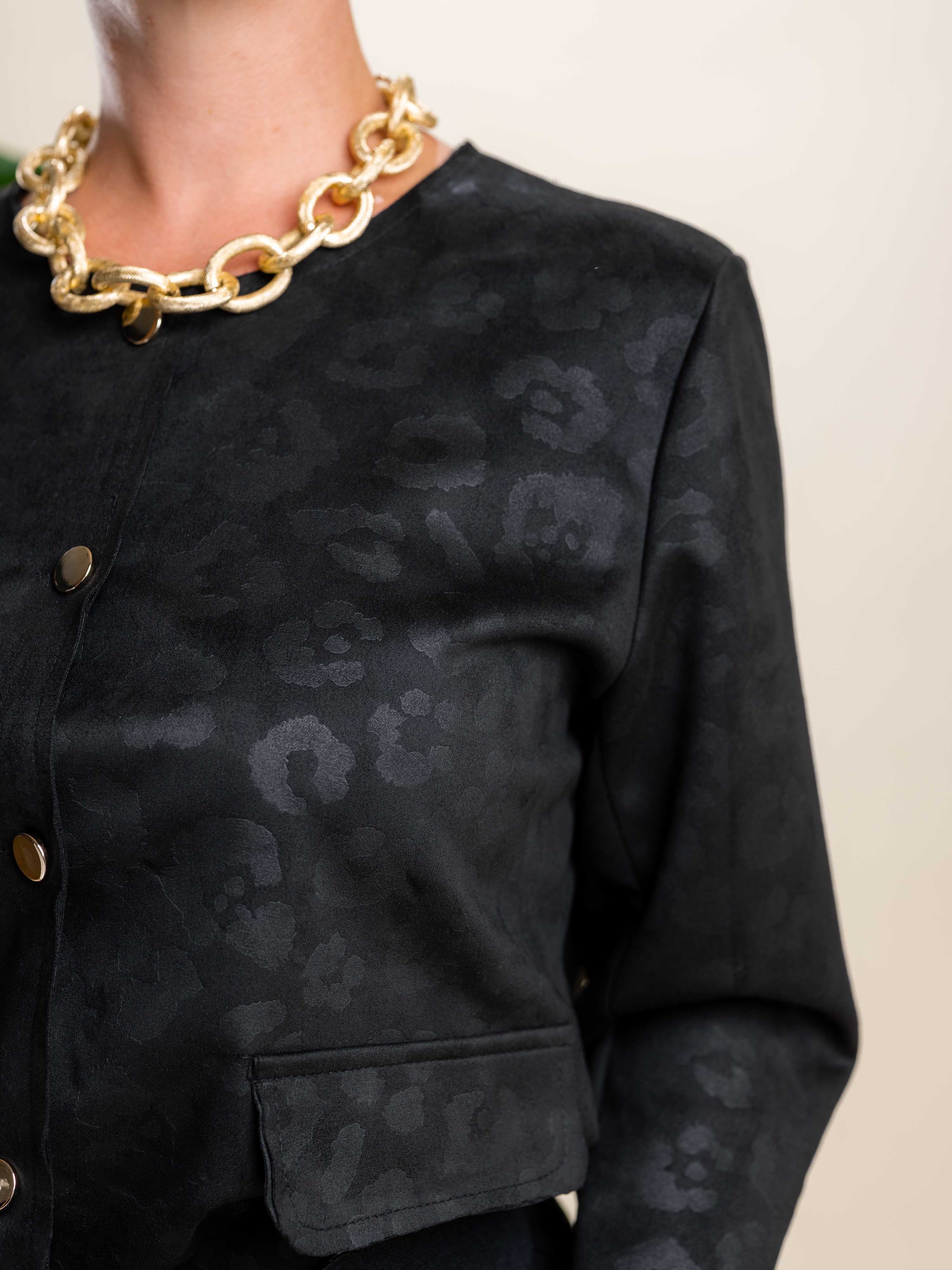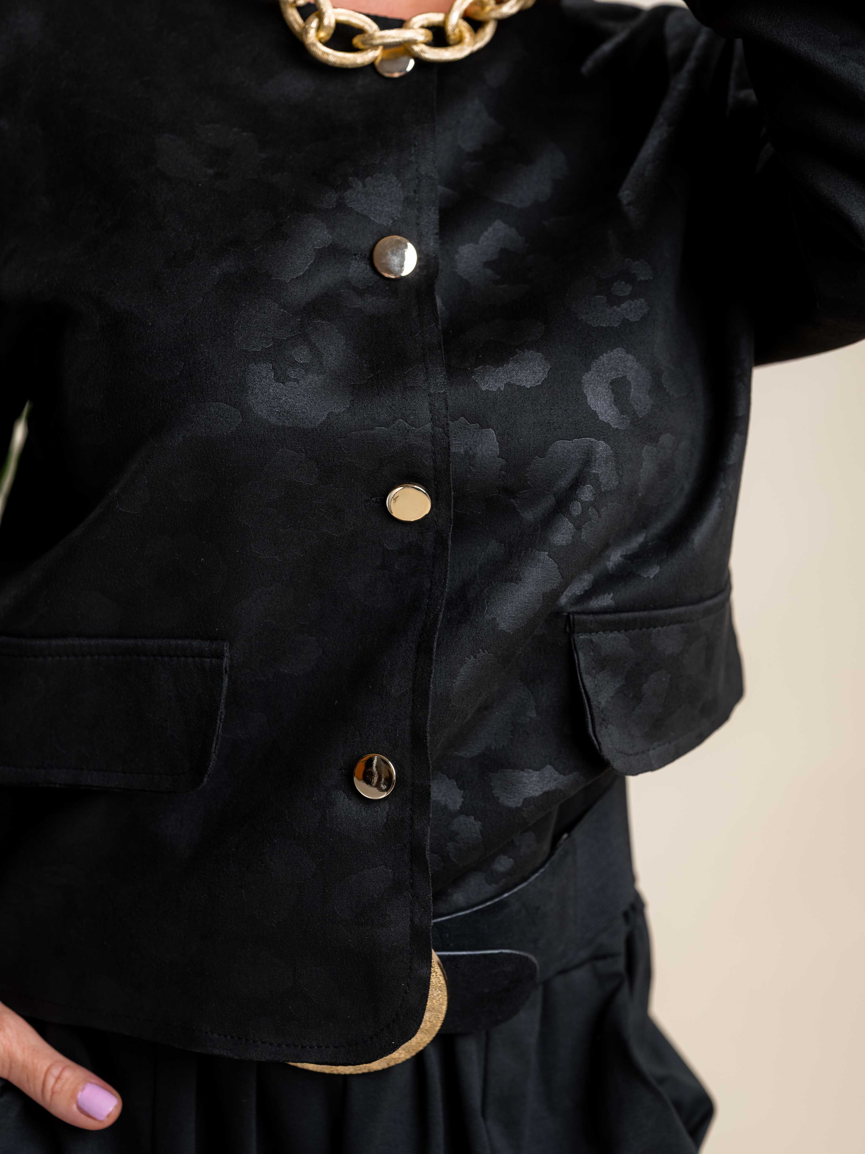 Obrazec izdelka Črna kratka jakna z vzorcem €49,50 DDV je že vključen v ceno. Količina Dodaj v košarico