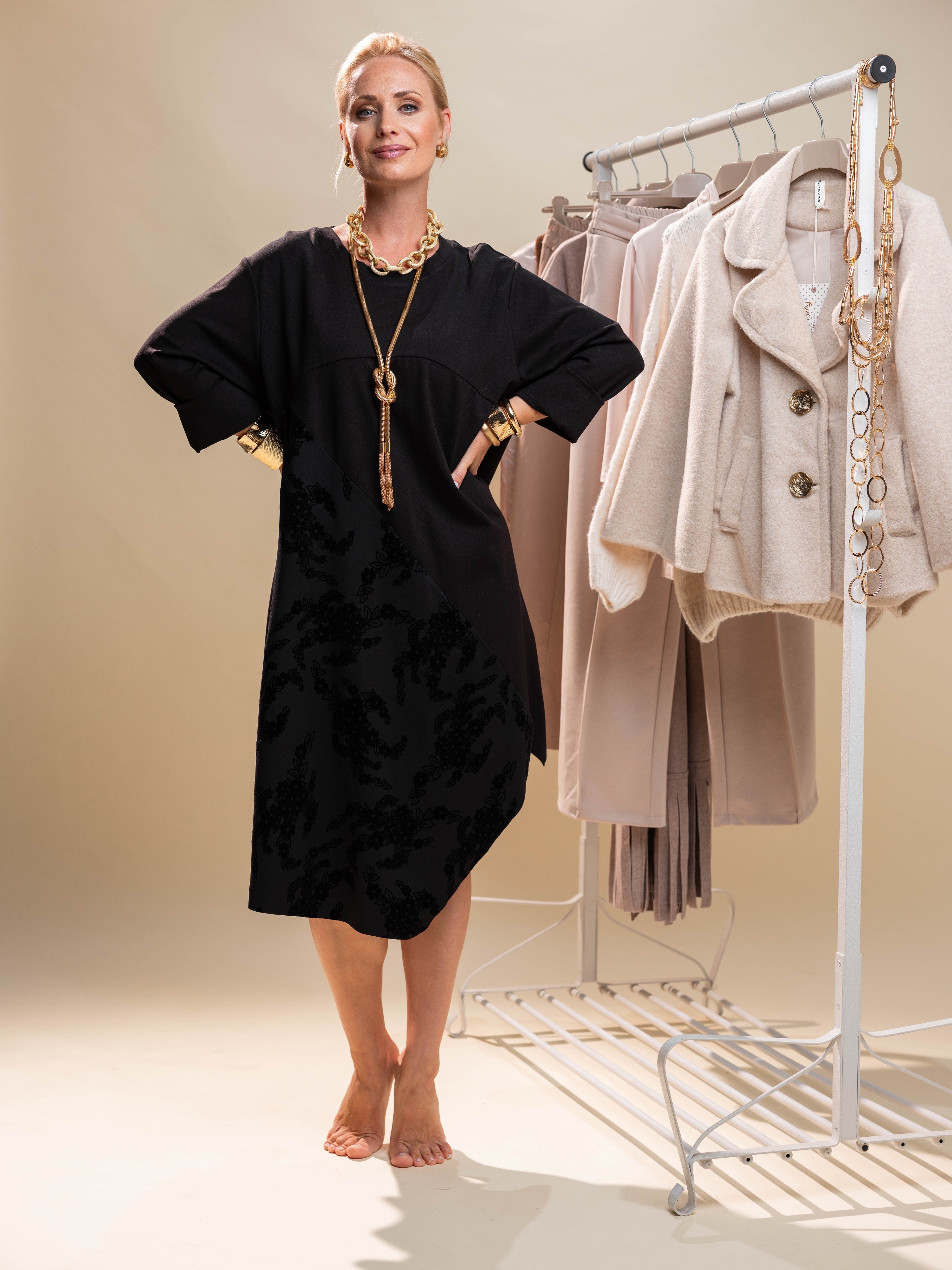 Obrazec izdelka Dolga črna obleka s cvetličnim vzorcem €59,10 DDV je že vključen v ceno. Količina Dodaj v košarico