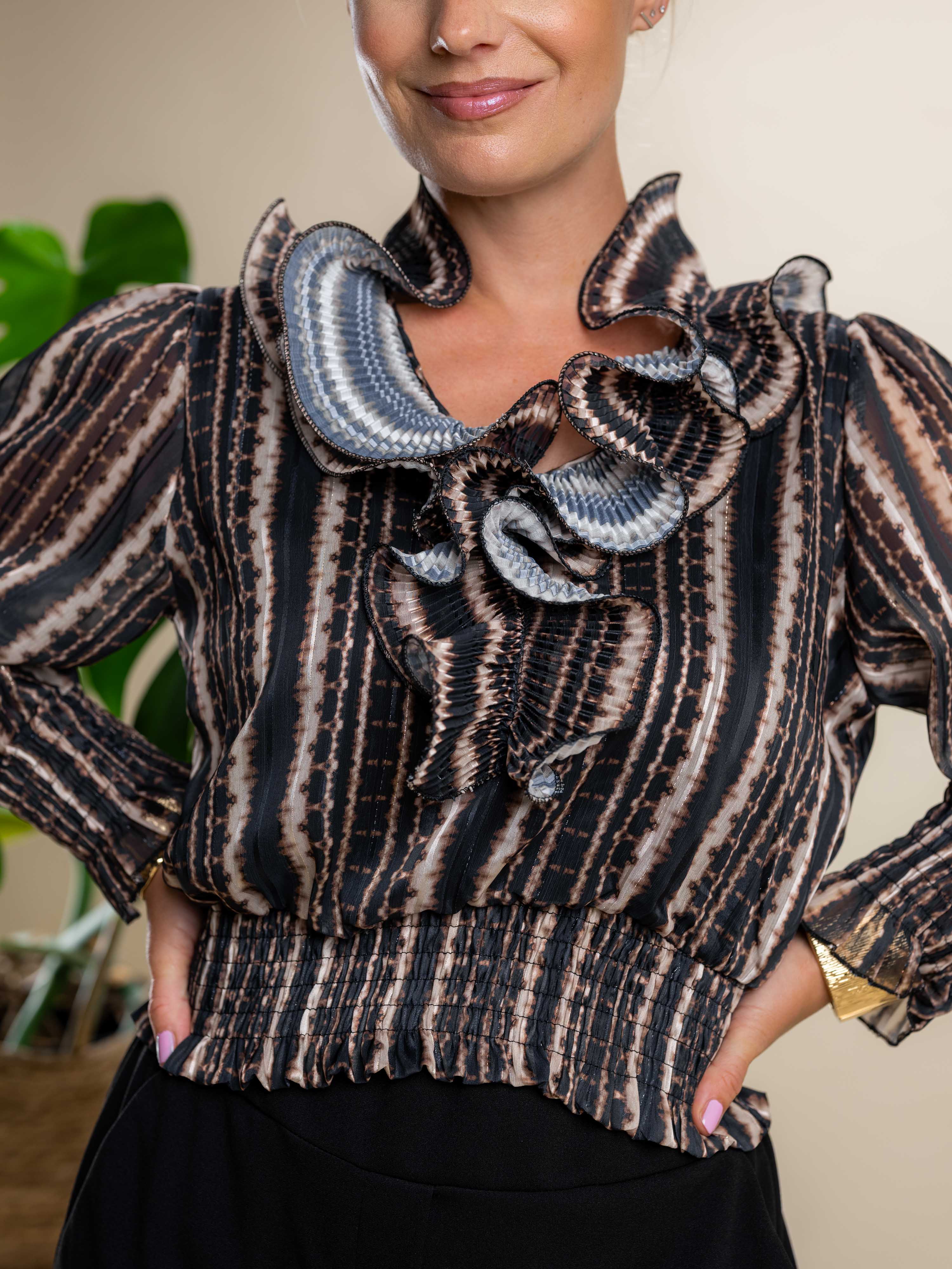 Ni na zalogi Obrazec izdelka Elegantna bluza z okrasnimi volančki €39,10 DDV je že vključen v ceno. Količina Ni na zalogi