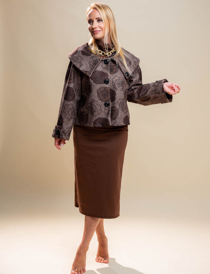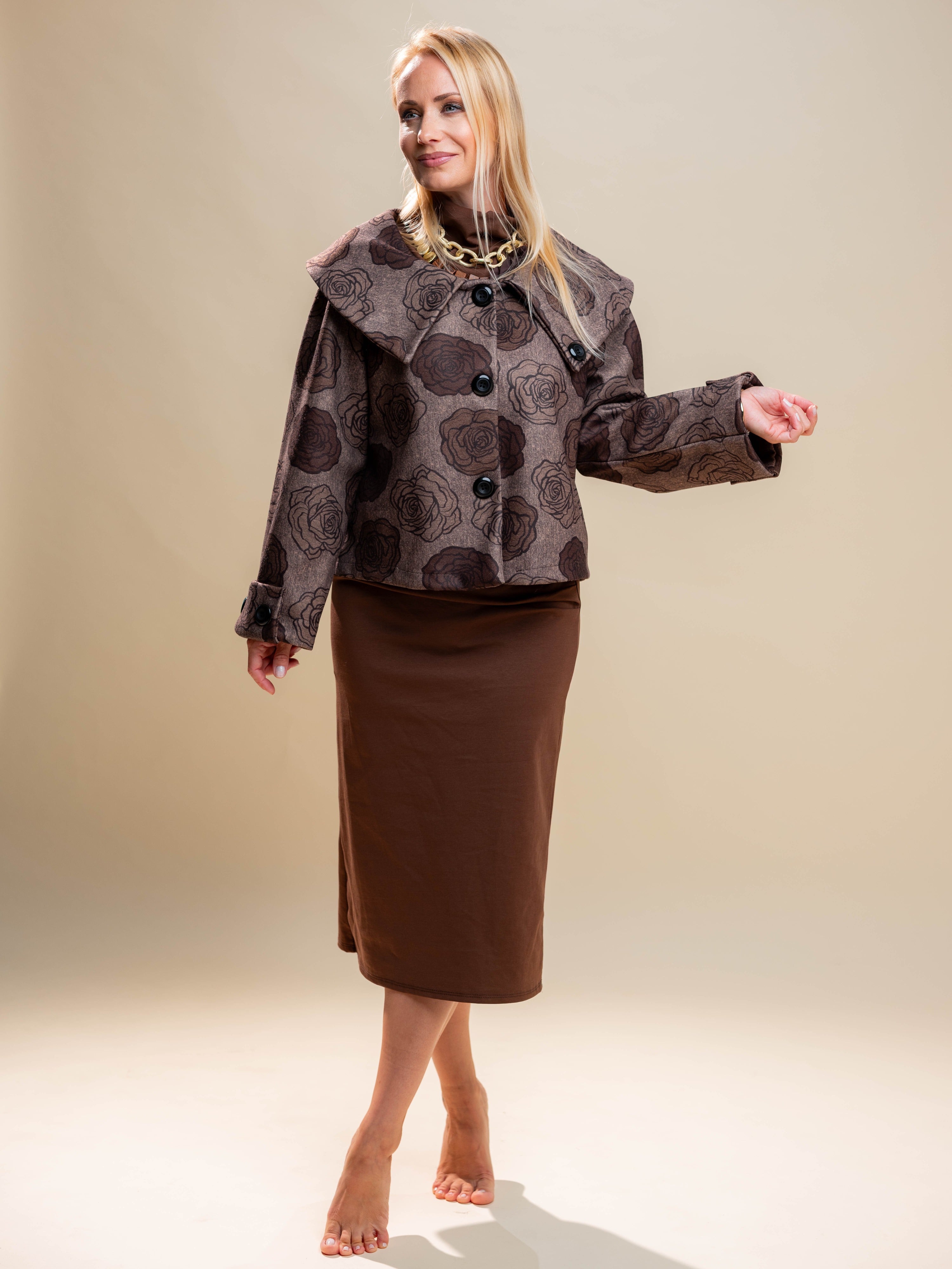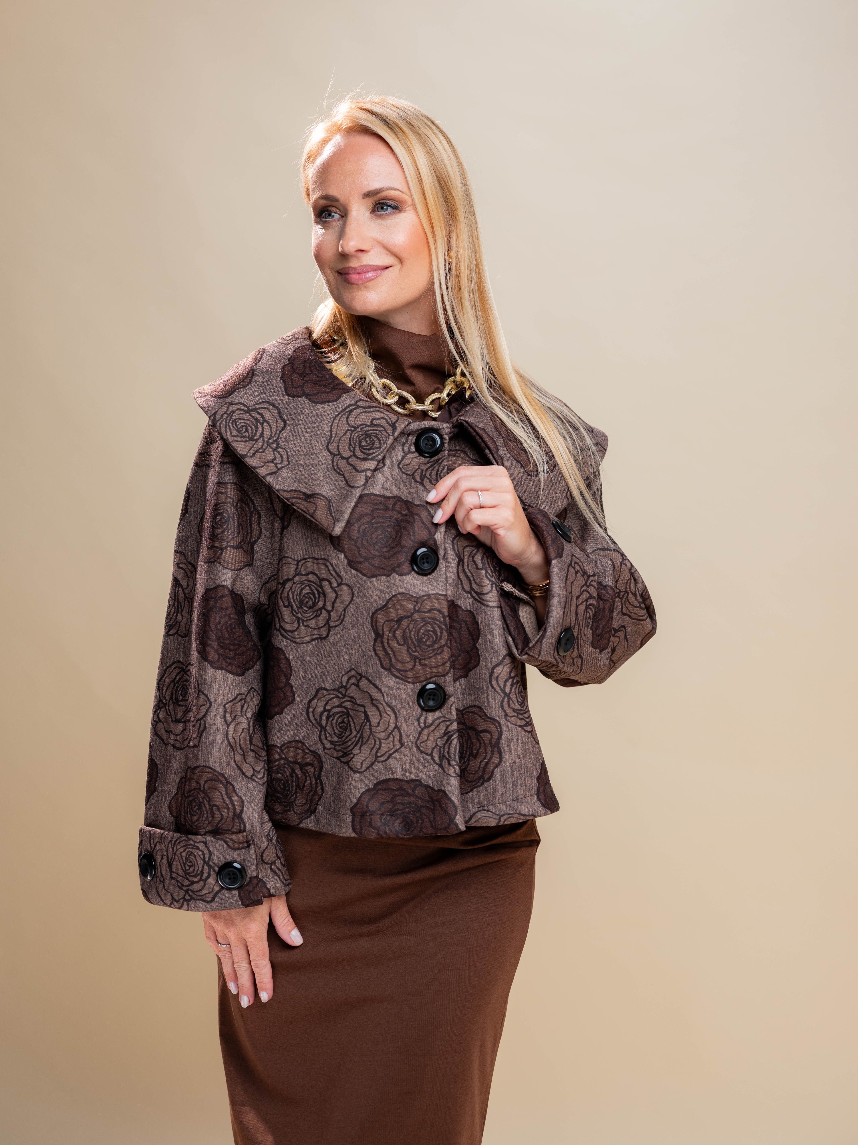 Obrazec izdelka Kratka rjava jakna s cvetličnim vzorcem ter gumbi €59,10 DDV je že vključen v ceno. Količina Dodaj v košarico