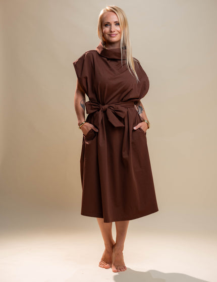 Midi rjava obleka