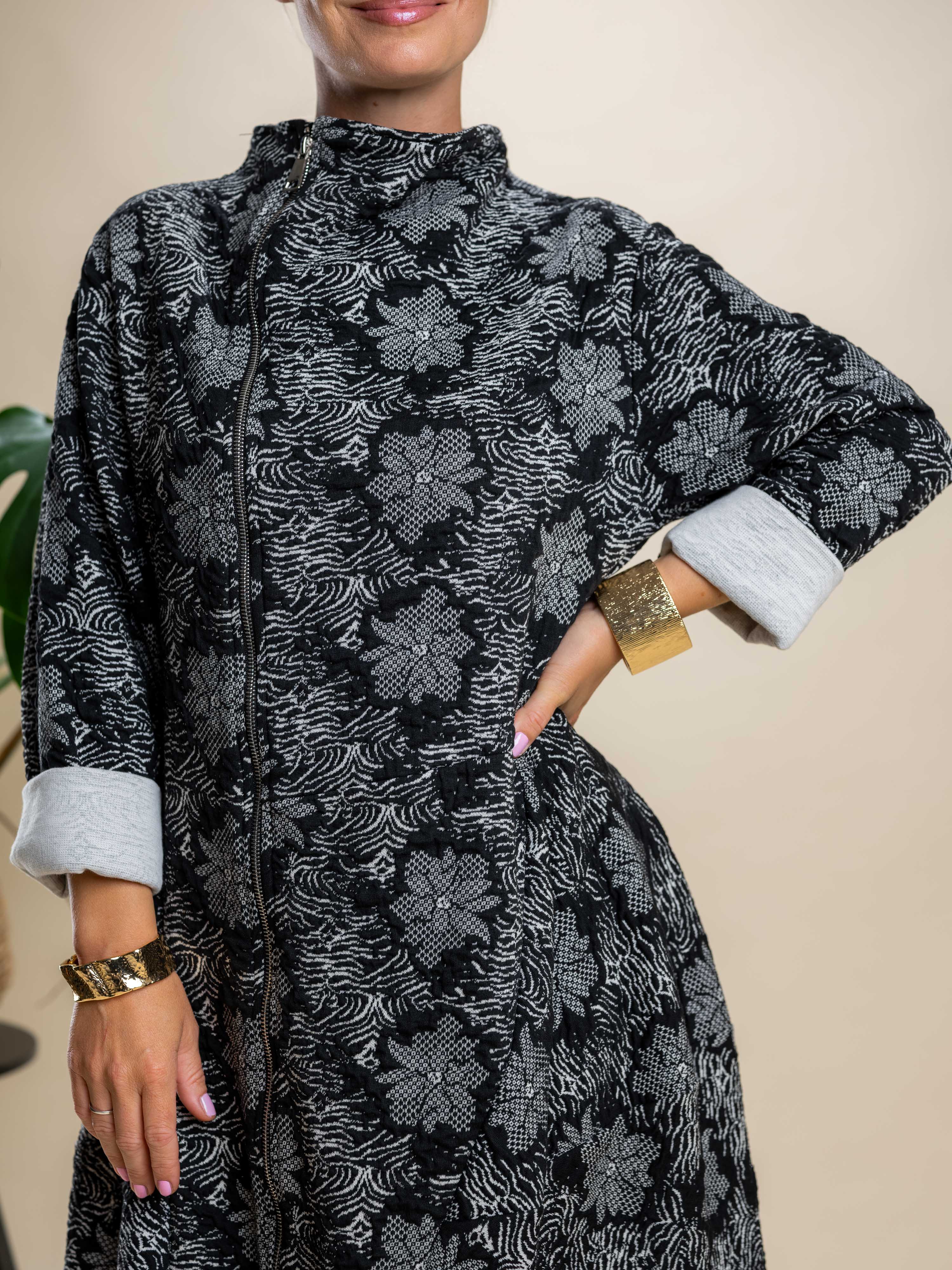 Ni na zalogi Obrazec izdelka Plašč s cvetličnim vzorcem €79,50 DDV je že vključen v ceno. Količina Ni na zalogi