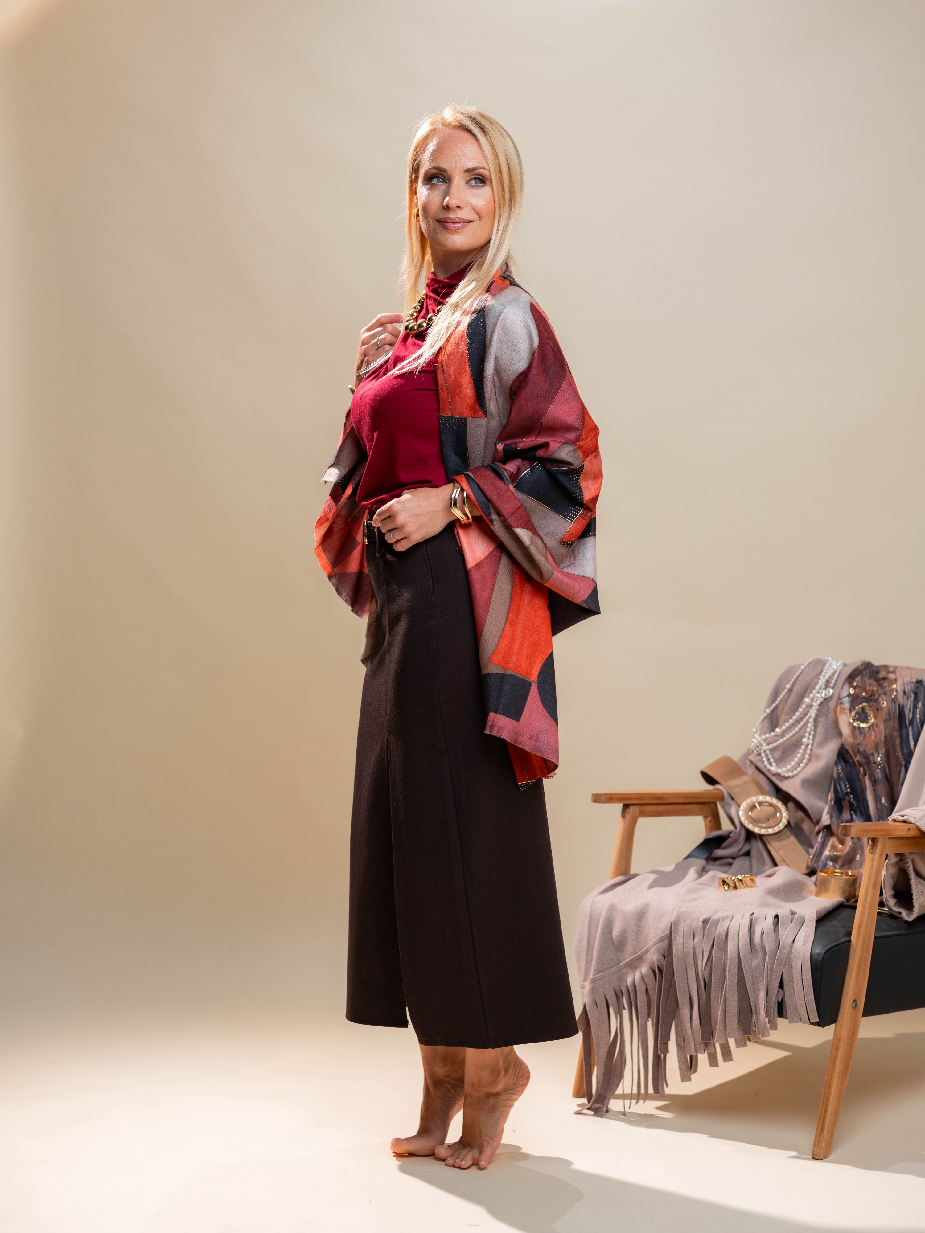 Obrazec izdelka Rdeč okrasni šal z vzorcem €19,90 DDV je že vključen v ceno. Količina Dodaj v košarico