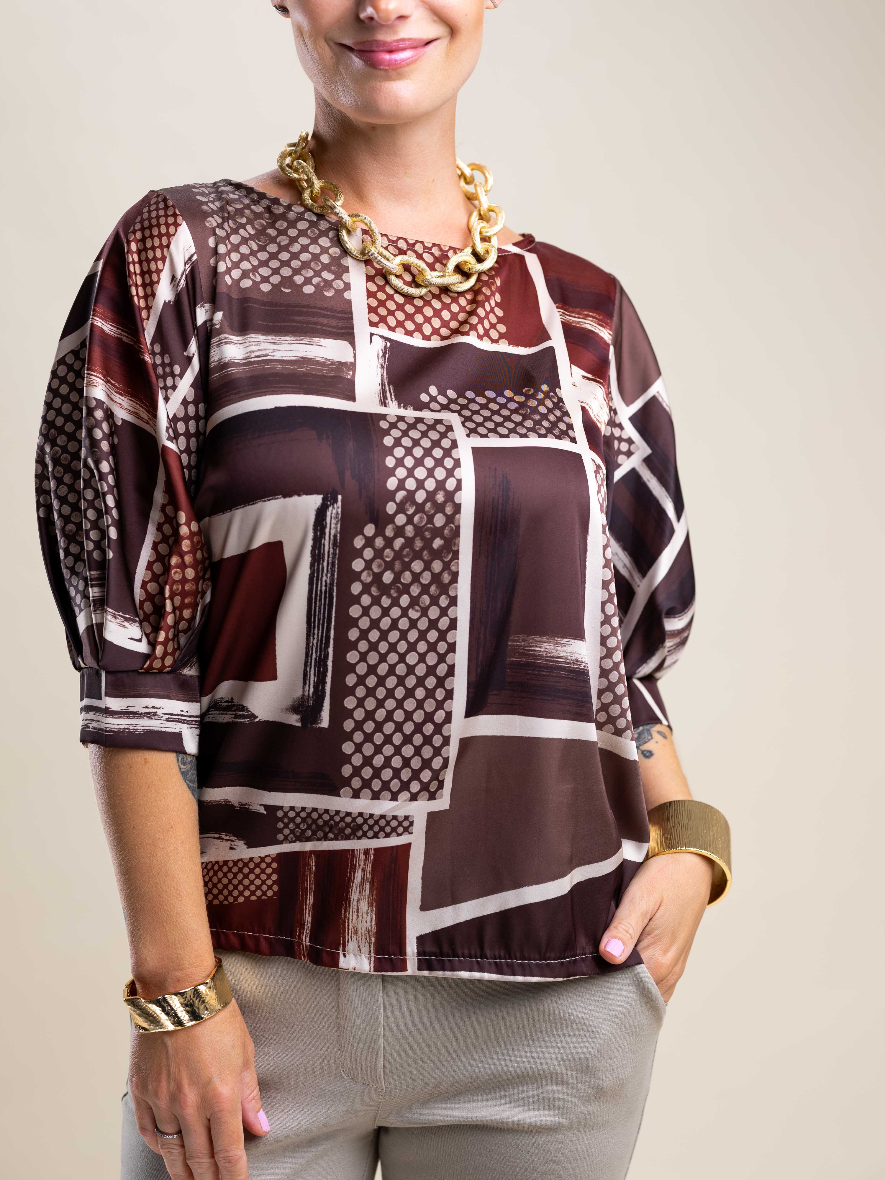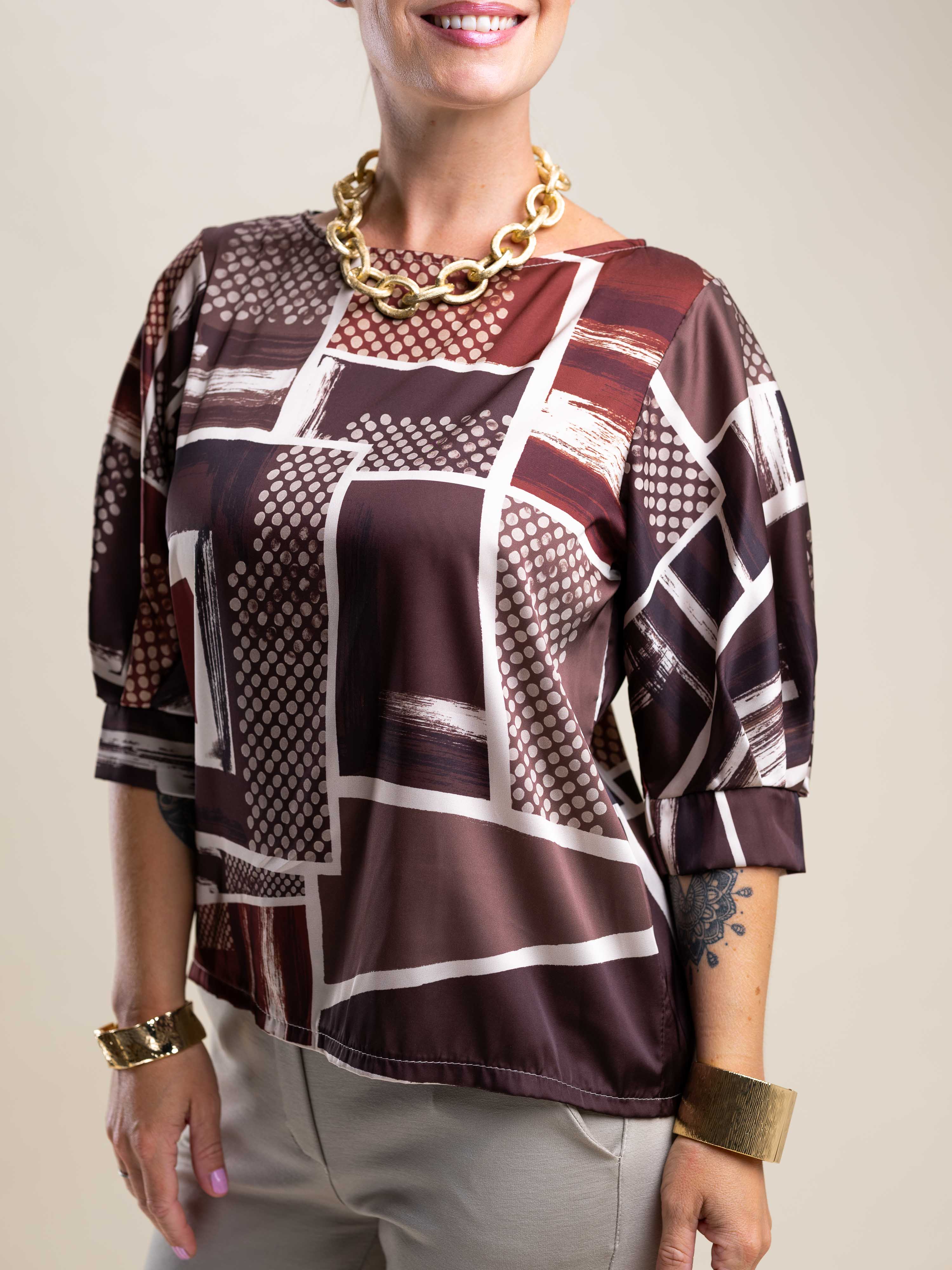 Obrazec izdelka Bluza z vzorcem in 3/4 rokavi €31,50 DDV je že vključen v ceno. Količina Dodaj v košarico
