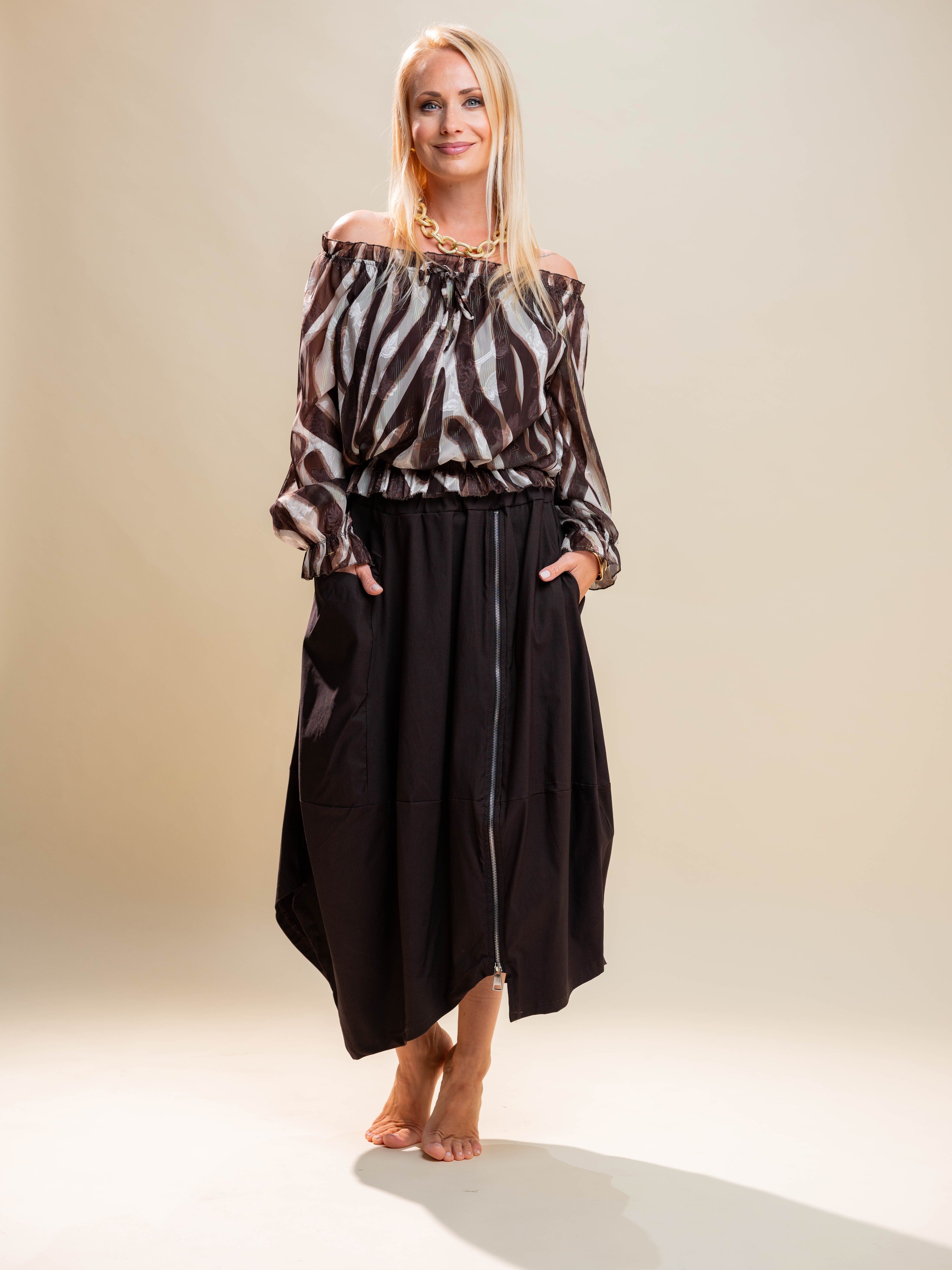 Obrazec izdelka Tunika z rjavim vzorcem in vrvico €34,50 DDV je že vključen v ceno. Količina Dodaj v košarico